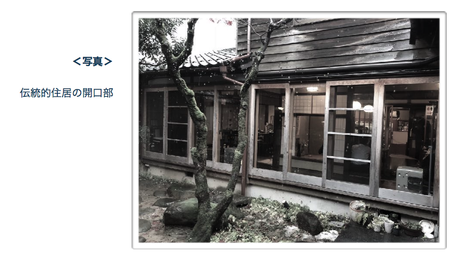 北日本ばかりでなく東日本や近畿、九州を含む西日本でも「寒冷な 冬季」を気候的特色に持つ日本。しかし西欧などと比較して低緯度 地域に位置するという地理的な特徴を生かして、環境調整のために 日射を利用することは、古来から日本の伝統的家屋に見られる普遍 的な技術です。