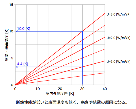 一方で、夜になってもなかなか涼しくならない夏場の二階部屋の環境などは、昼間にたっぷりと熱せられた屋根から侵入した熱が、時間遅れを伴って室内に侵入してくることが原因です。