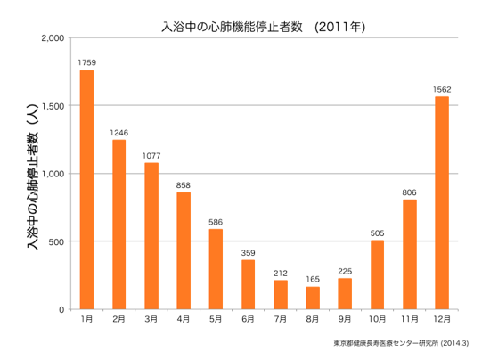 東京都健康長寿医療センター研究所は、年間17,000人もの方々がヒートショックに関連した「入浴中急死」に至った、との衝撃的な報告を行いました。その数は、年間の交通事故死者数の4倍にも相当します。