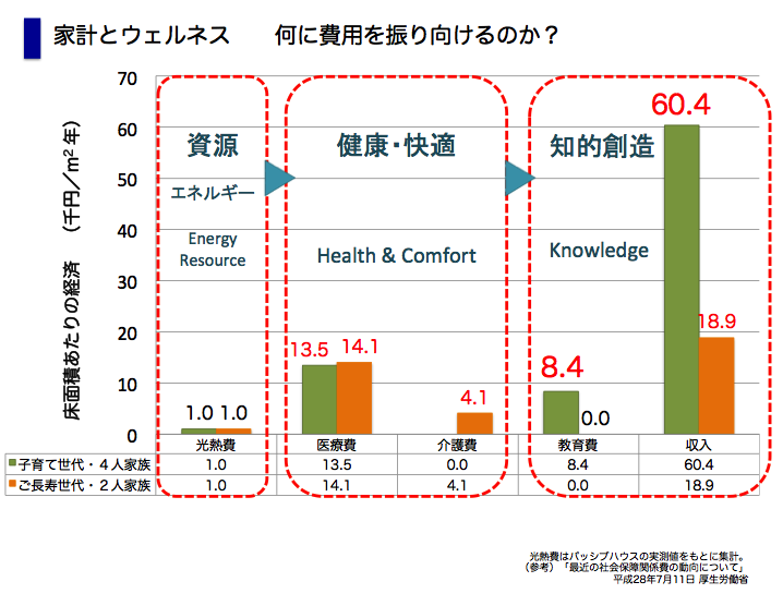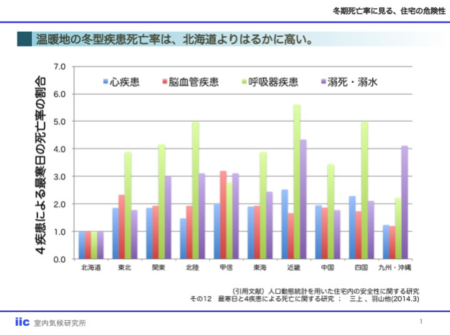 住宅の「断熱化」は、光熱費の抑制を主な目的として評価されることが多いのですが、CPAリスクに伴う医療費の増加、さらに介護費など社会的費用全体を考慮した健康リスク度による断熱構法の評価が大切になります。