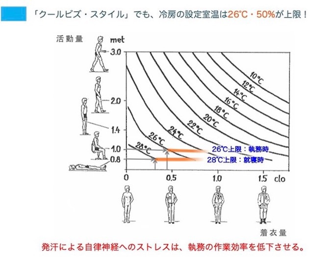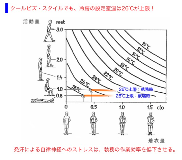 知的生産活動を効率的に行うためには、室温の上限値を26℃以下に維持する必要があります。