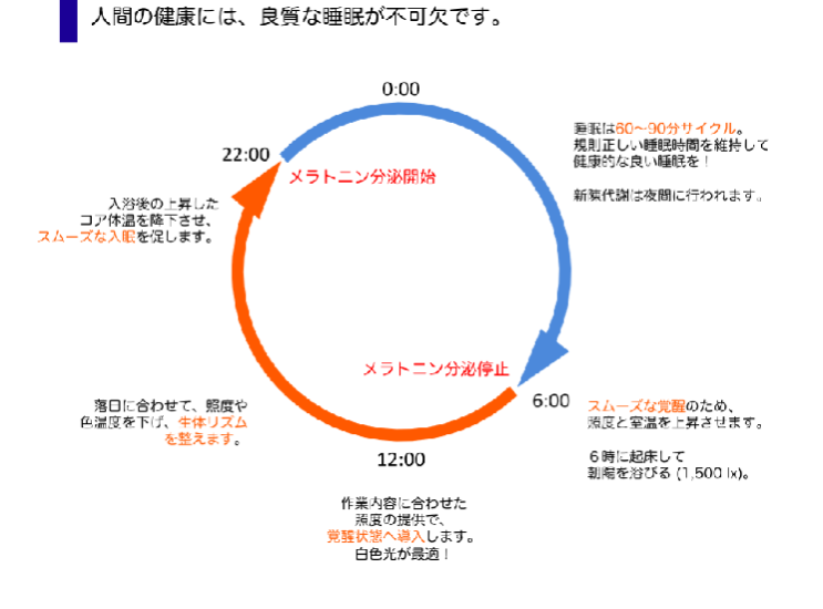 室内での活動が長時間化し、しかも精神的に高度な活動を要求される現代。太古からの生活リズムが明らかに崩壊している現代人の生活を振り返る時、体内時計が健康に密接に関連していることを、もう一度認識しなくてはいけません。