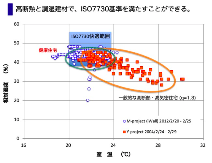 加湿器や乾燥機の使用で健康環境を維持しようとする前に、新築時に断熱を十分強化して室内の表面温度を高く保ち、自然素材の調湿建材を採用することで、室内に発生した水蒸気を上手に利用して風邪を予防しましょう。