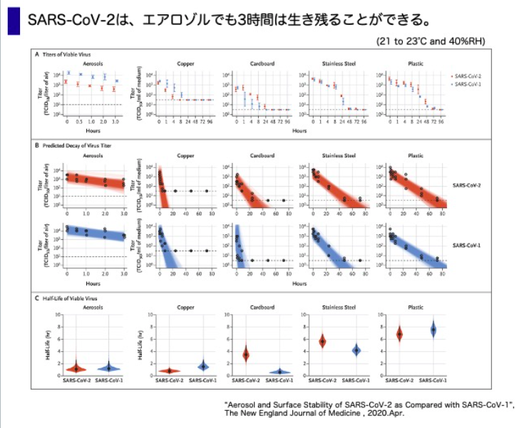 SARS-CoV-2はエアロゾルでも生き残る。