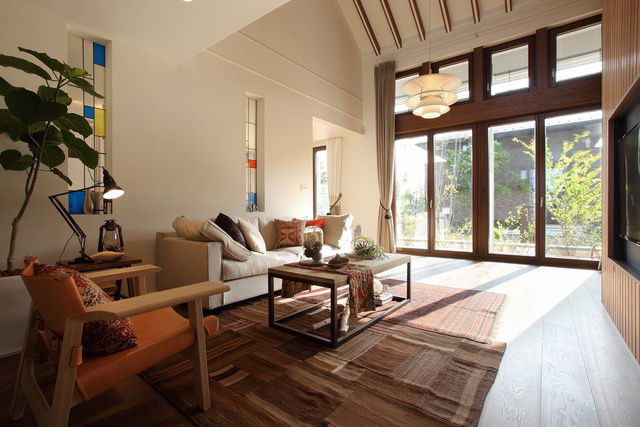 大きな「窓ガラス」のあるリビングは視覚的にとても開放的で、床面積がやや小さくても、自然を感じながら伸び伸びと、快適に暮らすことができます。