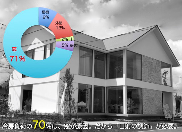 「冷房」が必要になる原因は、窓からの「日射熱」が第一位。
