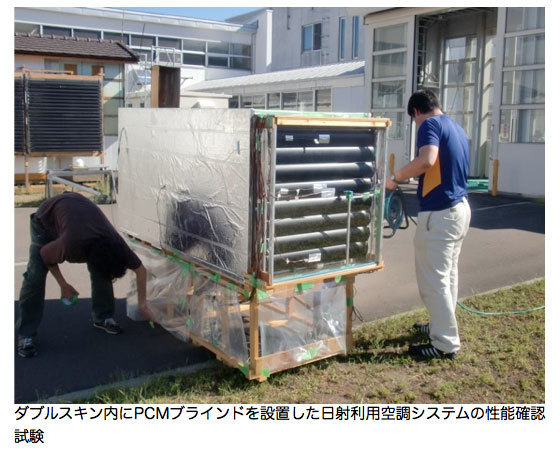 ダブルスキン内に設置したPCMブラインドによる日射利用空調システムに関する研究(第1報)PCMブラインドの環境調整効果と夜間換気駆動力の定量化/石戸谷裕二 佐々木康平 草間友花/空気調和・衛生工学会大会学術講演論文集(北海道)pp1013-1016/2012.8