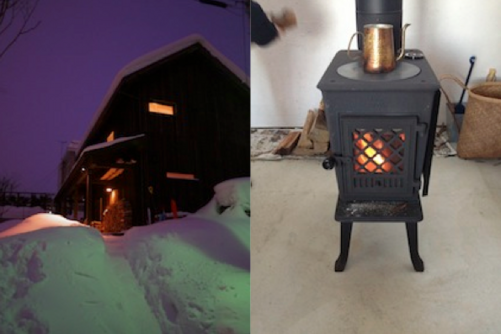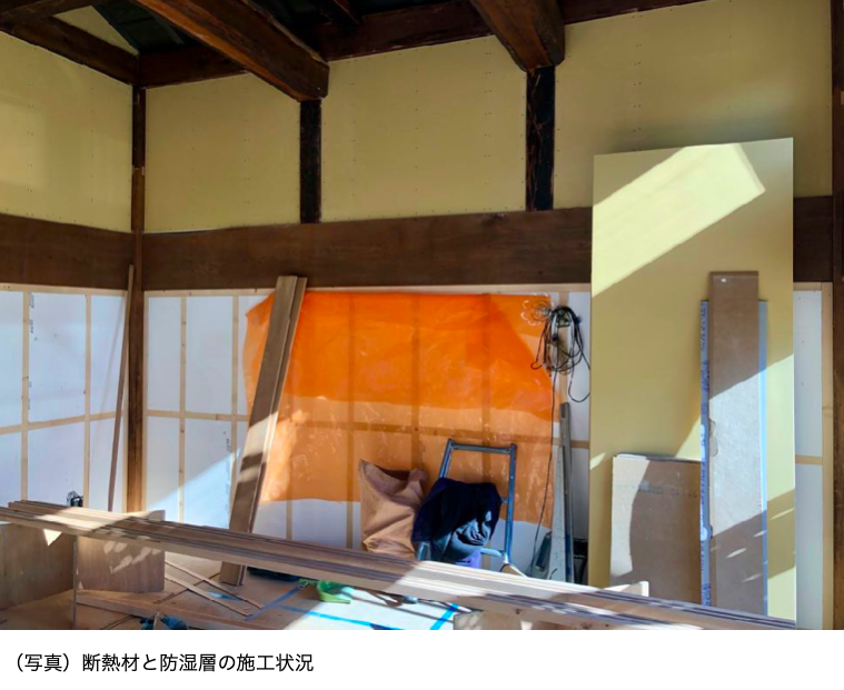 「e-プラスター10」で安定した冬の温湿度環境を創出 伐採材や建築廃材を燃料に薪ストーブの暖房エネルギー使用量を灯油換算で 40%削減 加湿器なしで冬期間の室内相対湿度を 40%以上に維持