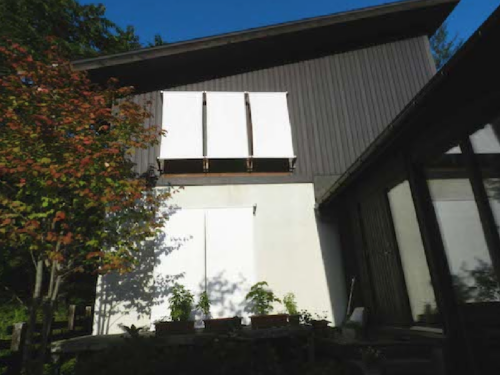 北海道にある実証実験施設での実測では、夜間外気冷房との組み合わせで昼間の最高室温を 10°C抑制。エアコン冷房なしでも、日平均室温は夏の快適範囲を維持できる事が実証されまし た。年々厳しくなる夏の厚さ対策。新規技術による日射遮蔽で、室内環境改善と省エネルギー 効果が実現できます。