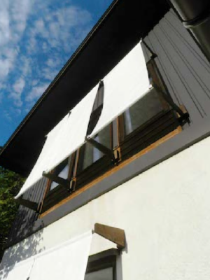SSS には日射熱を 90%以上、紫外線 UV を 95%以上カットできる高耐候性不織布を採用。開 口部に外付けするだけで、冷房費を一日 350 円以上節約できます。また、風雨に対する強度 も十分。実証実験では、2 度の台風時にも破損することはありませんでした。