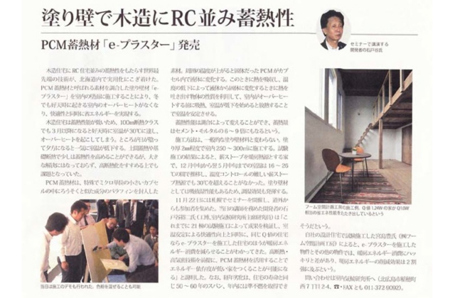 2013.10.6 潜熱蓄熱材「e-プラスター®」が新聞で紹介されました。