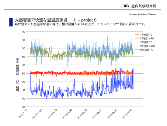 宅の中から3つの住宅を選び、通年で実施された環境測定とエネルギー消費の データを紹介しました。安定した温湿度の維持、太陽熱の暖房利用に関する有 効性などについて、優秀な技術者の皆さんと意見交換することができました。 みなさん、本当にありがとうございました。