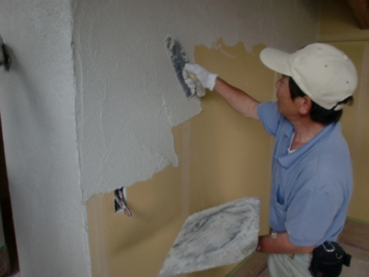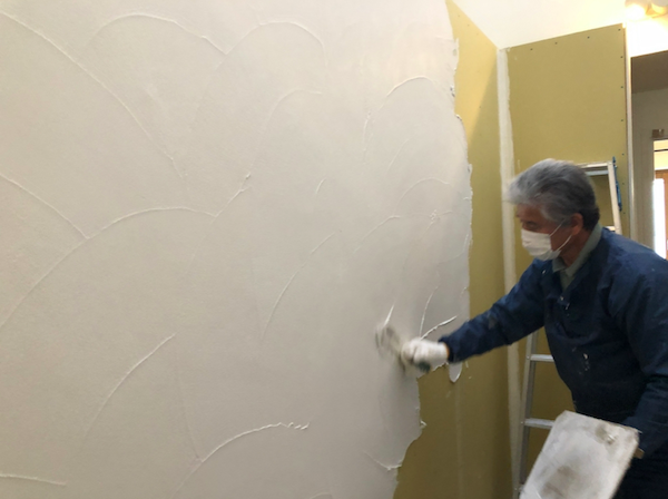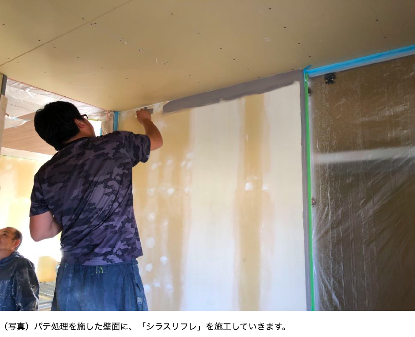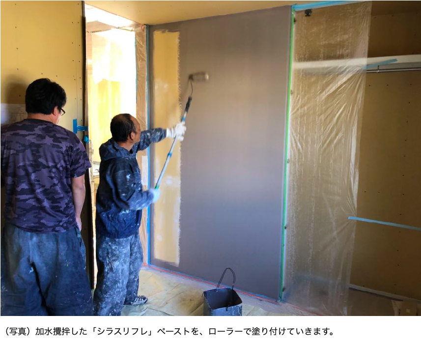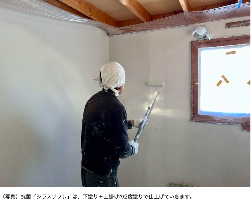 標準施工要領に沿って、抗菌「シラスリフレ」を壁面に施工します。