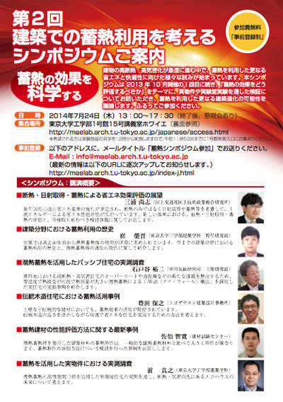 2014.7.6. 「第2回蓄熱シンポジウム」のチラシをアップしました。