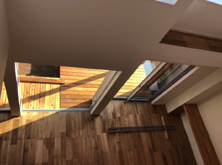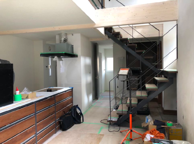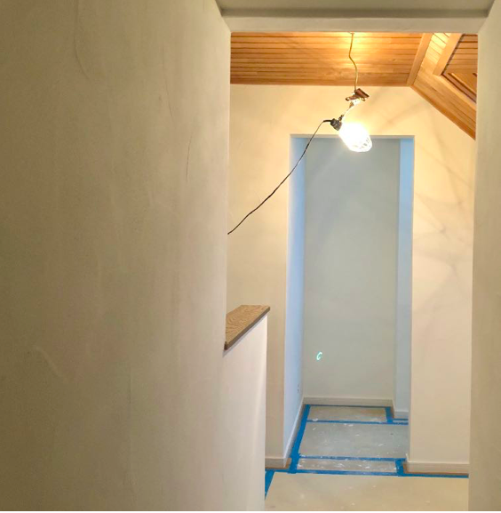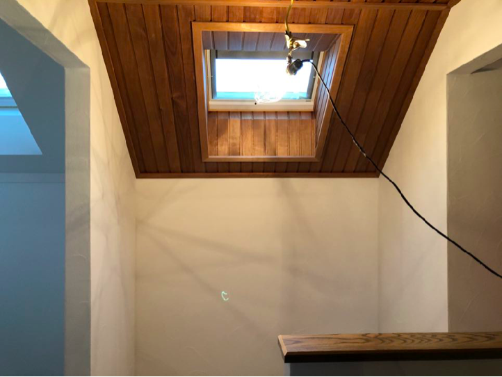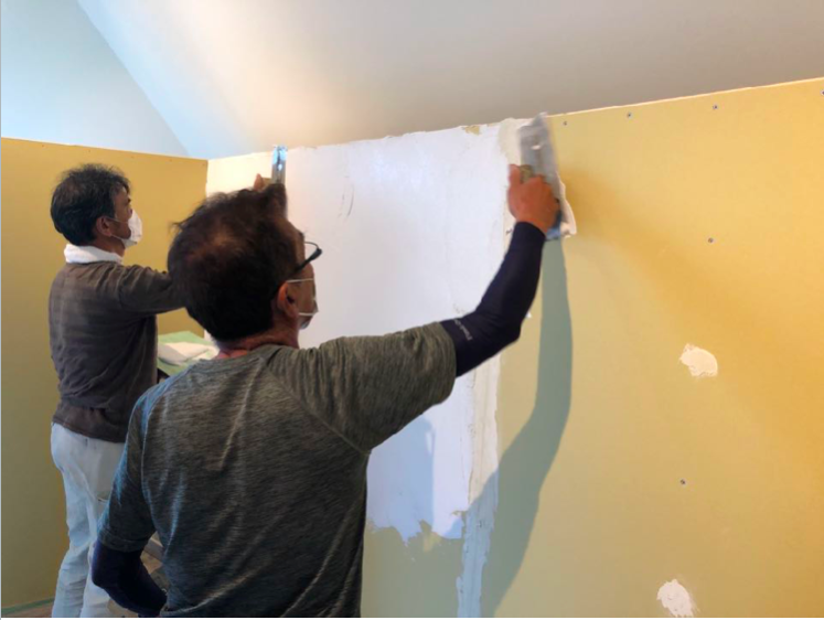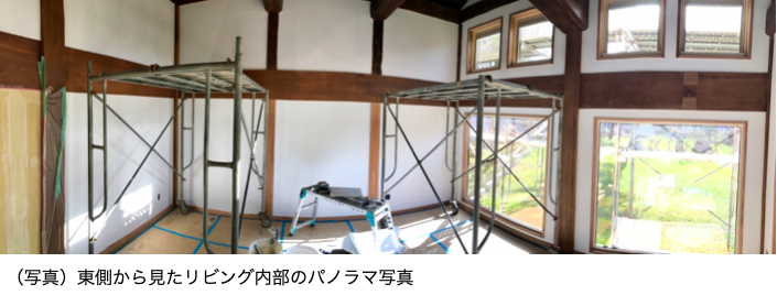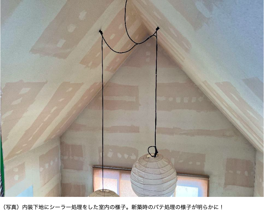 竣工当時には見ることのできなかった内装下地が露わになった室内。本当に丁寧に下地の パテ処理を行なっていたことが、改めて明らかになりました。素晴らしい職人芸です。