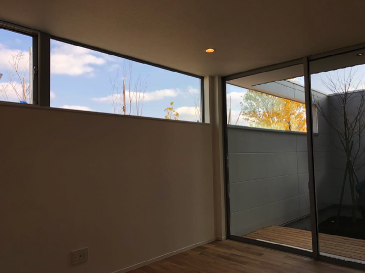 マットなホワイト色の抗菌「シラスリフレ」を施工する事で、入射光が室内に拡散され て、雰囲気が一気に明るくなってきました。