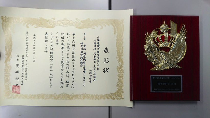 三浦研究室で実施した「蓄熱型什器」の開発が、優秀な研究成果としてポリテックビジョンで表彰されました。学生さんの努力が実り、共同研究者たちも喜びひとしおです。