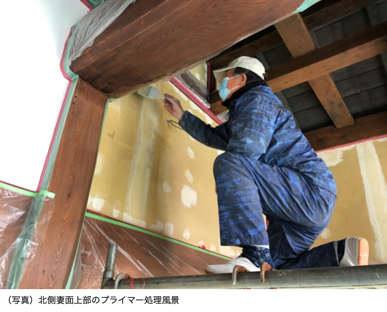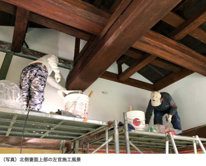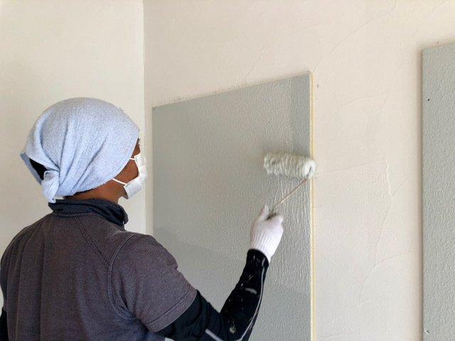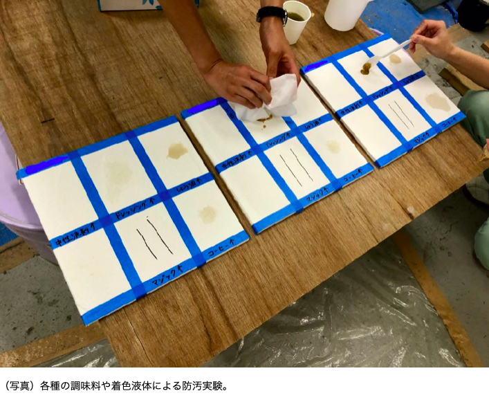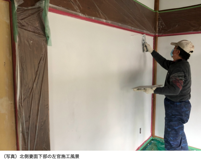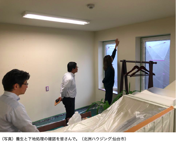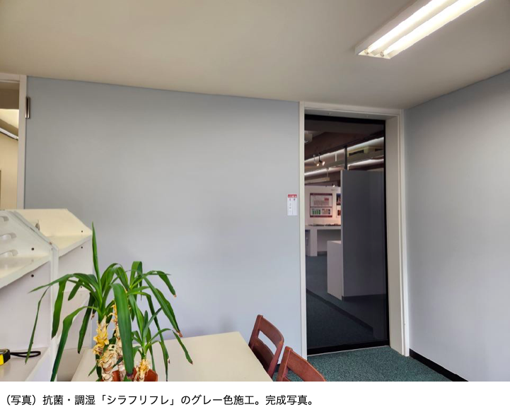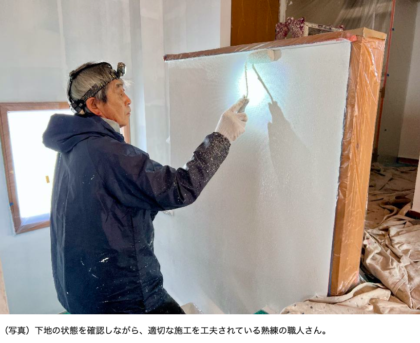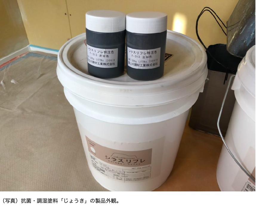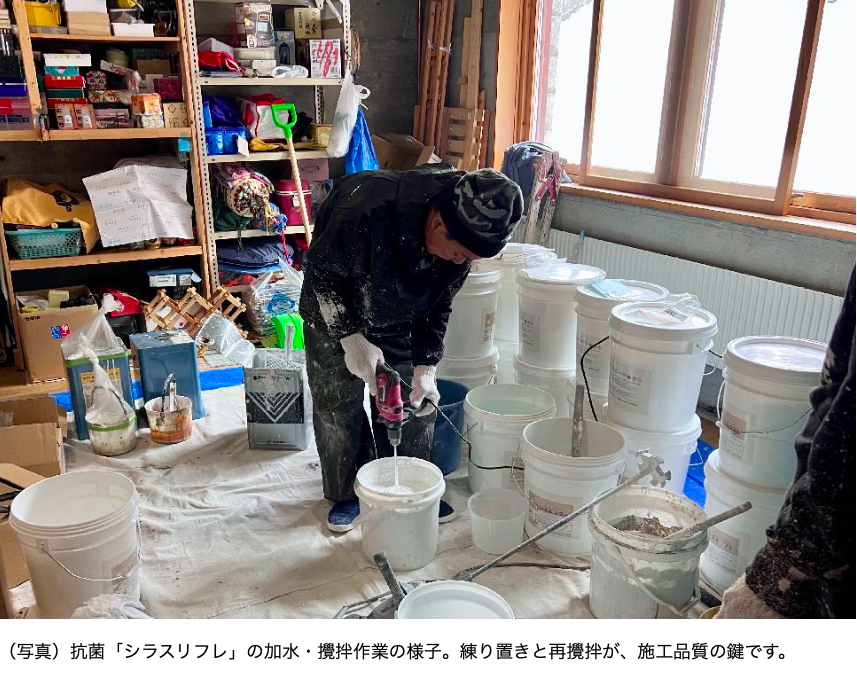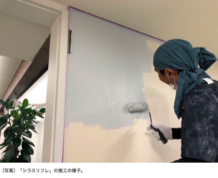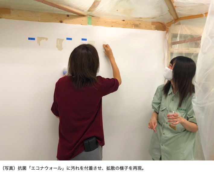 (写真)抗菌・調湿塗料「シラスリフレ」の施工検証風景。