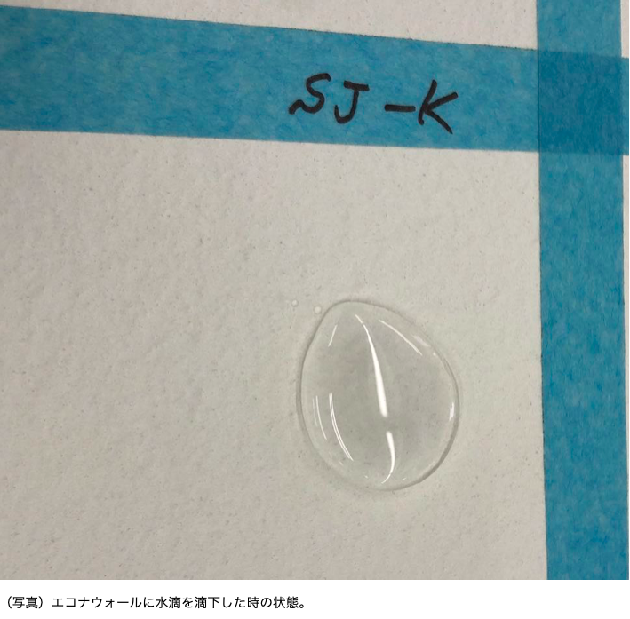 石膏プラスターと潜熱蓄熱材PCMを主原料とする「e−プラスター」は、室内の熱を呼吸しながら室温を安定させるだけでなく、入浴や洗濯乾燥、調理などで室内に放出された水蒸気を一時的に吸収。乾燥空気が室内に流れ込んだときに放出して相対湿度の低下を抑制する機能があります。