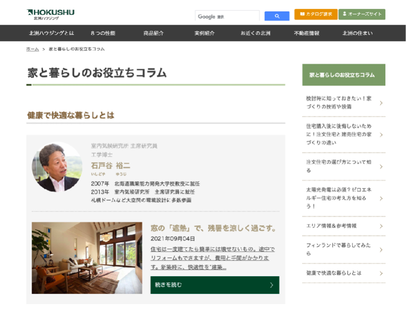 「北国の冬の生活が、豊かで誇りあるものであるために」との目標を掲げ、高断熱・高気密住 宅の研究がスタートして 30 年あまりが経過。この間、断熱による室温の形成とともに住宅の 内部からは「寒さ」が取り除かれ、気密化によってすきま風は解消されました。新鮮空気をど こから取り入れ、汚染空気をどこから排出するかという「計画換気」が実現したのです。