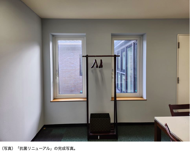 抗菌・防カビや調湿性能はもとより、抗菌リニューアルで室内が活き活きとしてきまし た。見学者も竣工が楽しみになるような、そんな施工現場でした。