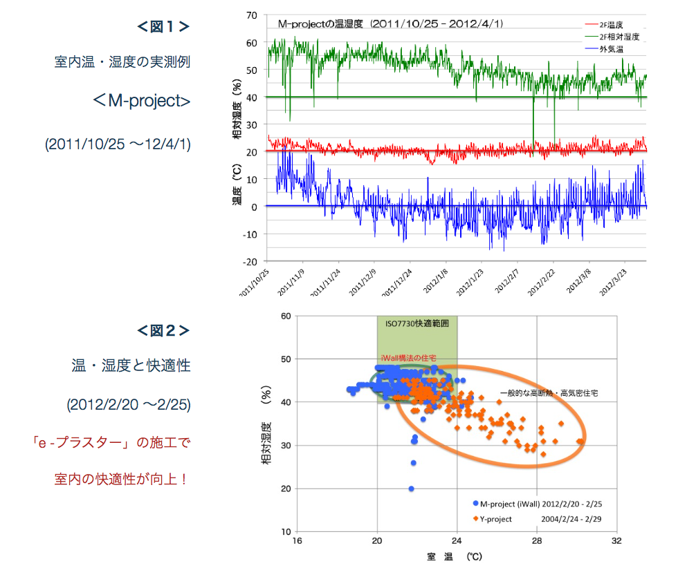 高断熱・高気密住宅に「iWall構法」を採用することで夏涼しく、 冬は暖かい室内環境を実現できることが、実証住宅における測定に よって定量的に確認されています。